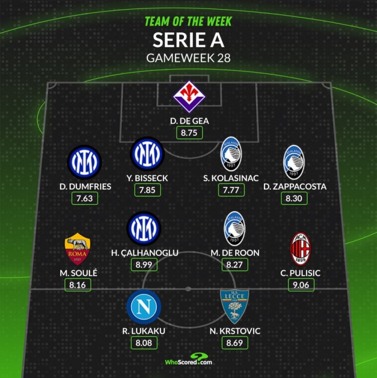 3月11日訊 意甲第28輪聯(lián)賽已經(jīng)完賽,whoscored也統(tǒng)計(jì)了本輪意甲最佳陣容,國米和亞特蘭大各3將入圍。