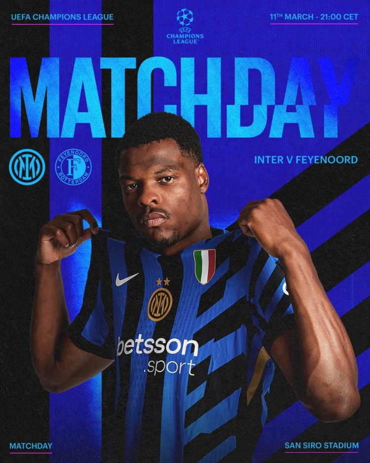 2025-03-11 23:40:45國米曬歐冠主場戰(zhàn)費耶諾德海報:鄧弗里斯單人出鏡