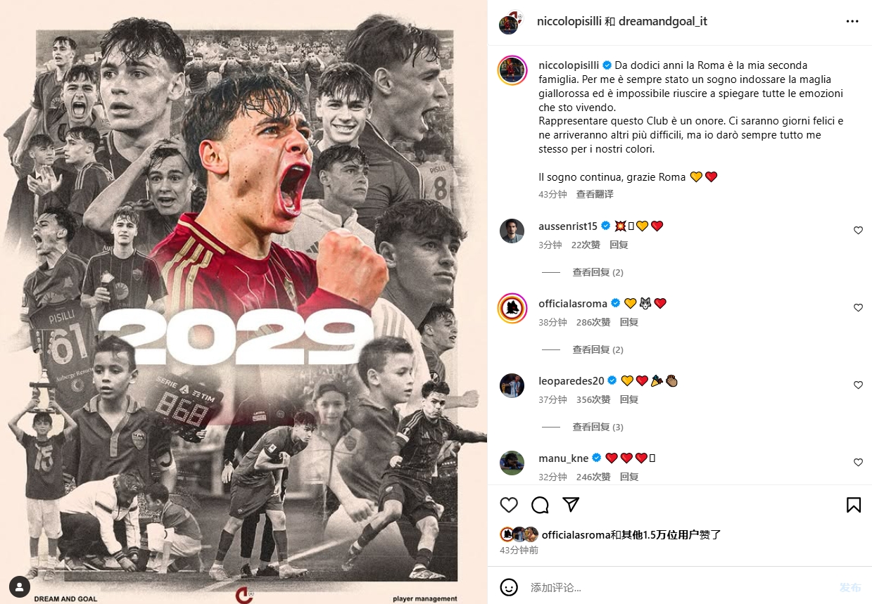 2025-02-24 16:10:35皮西利社媒曬續(xù)約海報(bào):羅馬是自己第二個(gè)家 榮幸能為球隊(duì)出戰(zhàn)