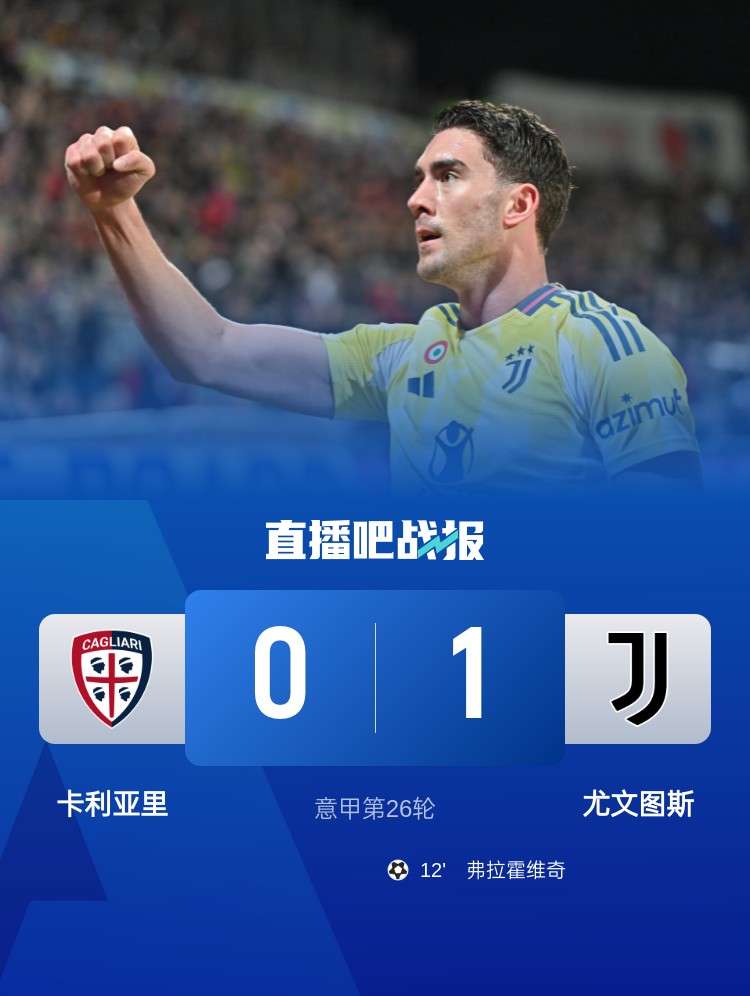 2025-02-24 04:40:542025年02月24日 意甲4連勝!尤文1-0卡利亞里 DV9破門坎比亞索&道路傷退