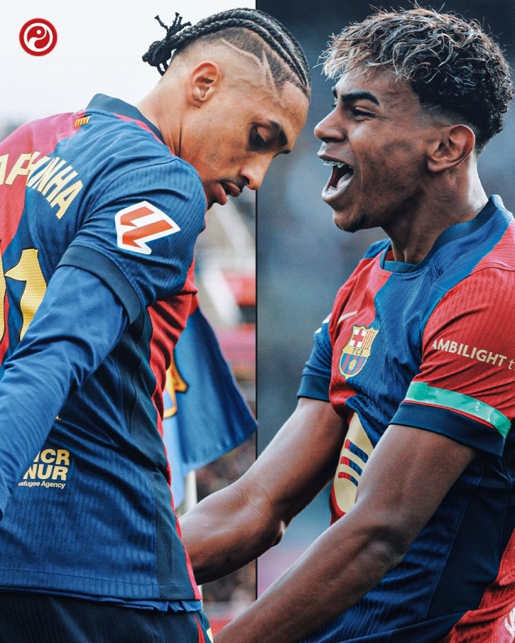 數(shù)據(jù)統(tǒng)計顯示,拉菲尼亞是本賽季西甲唯一在運動戰(zhàn)能夠創(chuàng)造機會50+的球員(57次),他在26輪聯(lián)賽貢獻13球7助攻;亞馬爾本賽季成功過人高達95次,比其他西甲球員至少多出23次,也是本賽季西甲唯一助攻上雙的球員(11次)。