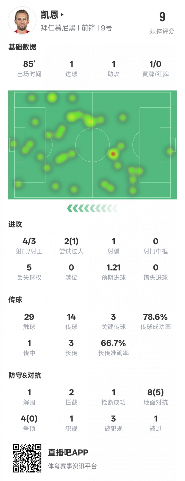 2025-03-12 08:01:33凱恩本場數(shù)據(jù):傳射建功+3關(guān)鍵傳球1過人成功,評(píng)分9.0
