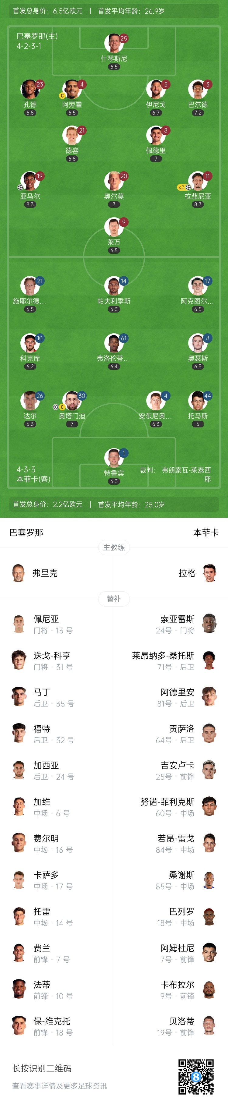 2025-03-12 08:05:11半場-巴薩3-1本菲卡總比分4-1領(lǐng)先 亞馬爾傳射拉菲尼亞雙響