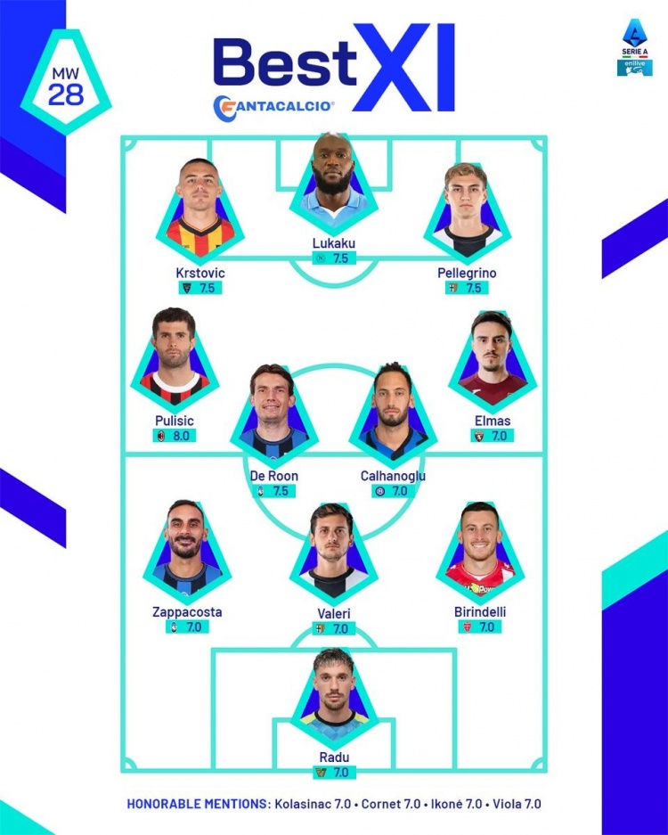 2025-03-12 08:06:33意甲官方本輪最佳陣:普利西奇、恰20領(lǐng)銜,盧卡庫、拉杜在列