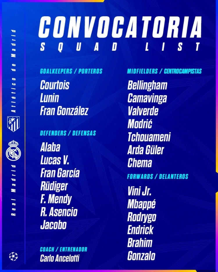 2025-03-12 21:28:23皇馬客戰(zhàn)馬競大名單:庫爾圖瓦&呂迪格回歸,姆巴佩領(lǐng)銜鋒線