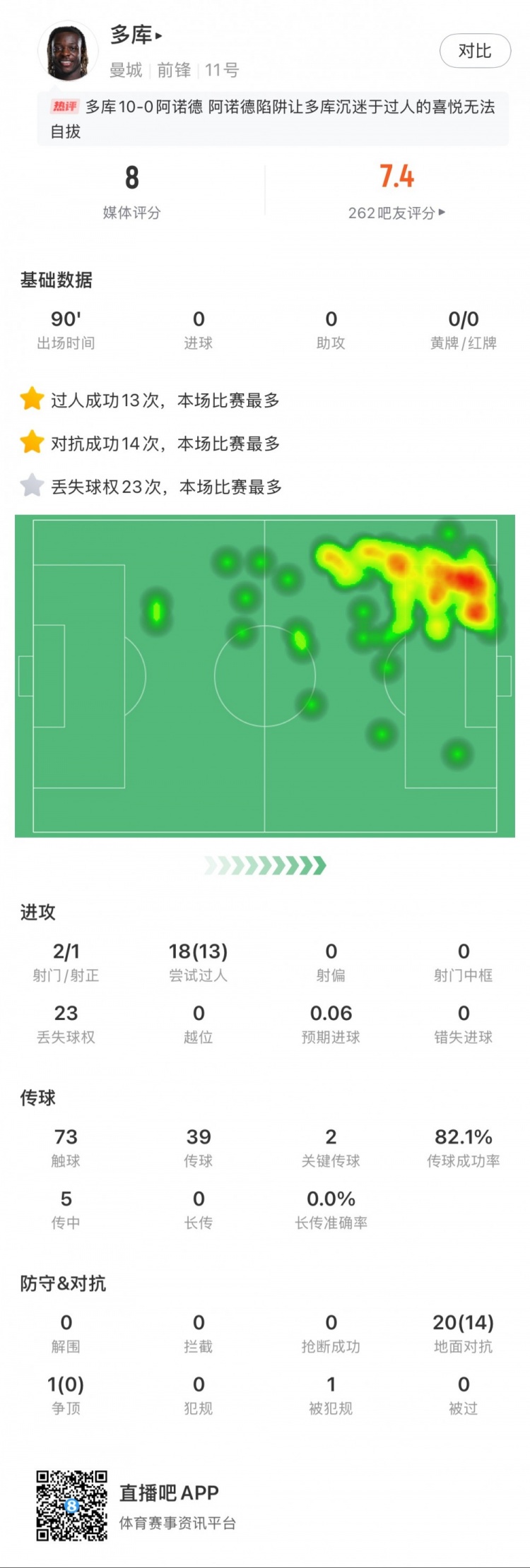 2025-02-24 16:11:04多庫本場(chǎng)數(shù)據(jù):13次成功過人,14次贏得對(duì)抗,23次丟失球權(quán)均最多