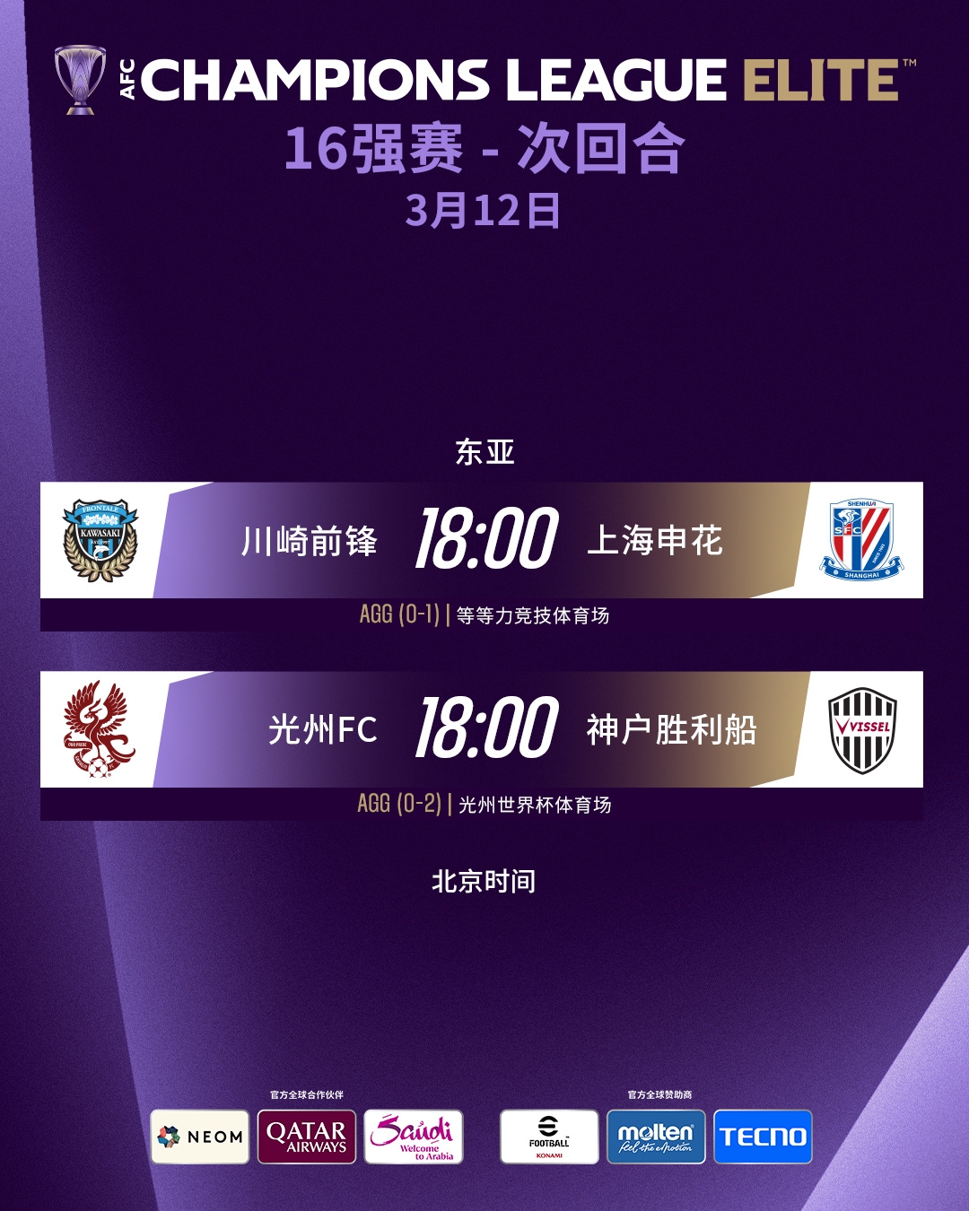03月12日訊 亞冠精英聯(lián)賽1/8決賽將進(jìn)行最后兩場較量,上海申花客場挑戰(zhàn)川崎前鋒的比賽將決定中超聯(lián)賽的亞冠名額分配。
