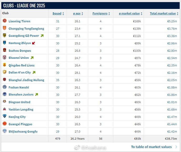 2025-03-12 21:43:25遼寧鐵人總身價525萬歐元,為新賽季中甲最高