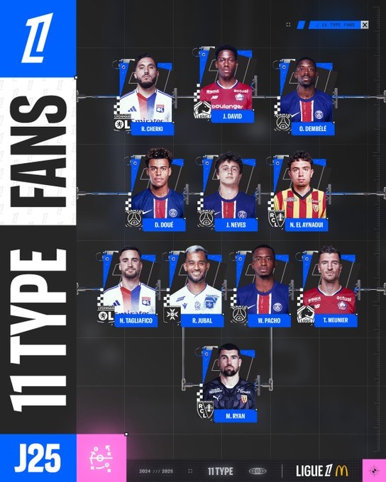 2025-03-13 07:01:48法甲本輪最佳陣:登貝萊領(lǐng)銜,內(nèi)維斯、杜埃和帕喬入選