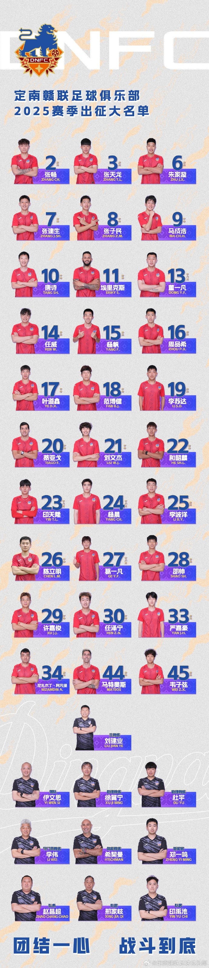 2025-03-13 14:19:42定南贛聯(lián)新賽季一線隊名單:三外援領銜&共30人入選,唐詩10號