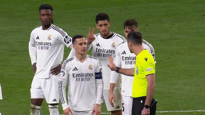2025-03-13 14:24:32皇馬全員抗議!檢查小蜘蛛是否2次觸球時,貝林等人紛紛伸2根手指
