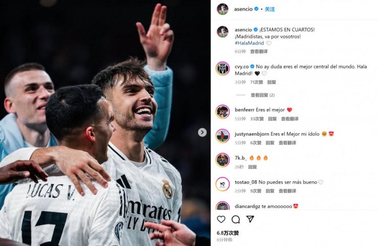 2025-03-13 14:25:26勞爾-阿森西奧社媒慶祝晉級(jí)八強(qiáng):皇馬球迷們,這是獻(xiàn)給你們的