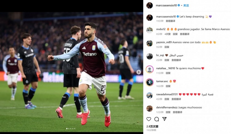 2025-03-13 14:26:008場7球&將戰(zhàn)巴黎!阿森西奧社媒曬慶祝照:讓我們繼續(xù)保持夢想