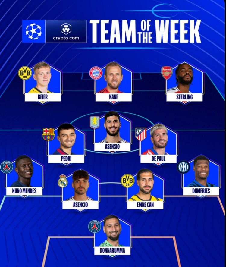 2025-03-14 00:12:23歐冠官方本輪最佳陣:凱恩領(lǐng)銜,佩德里、斯特林、多納魯馬在列
