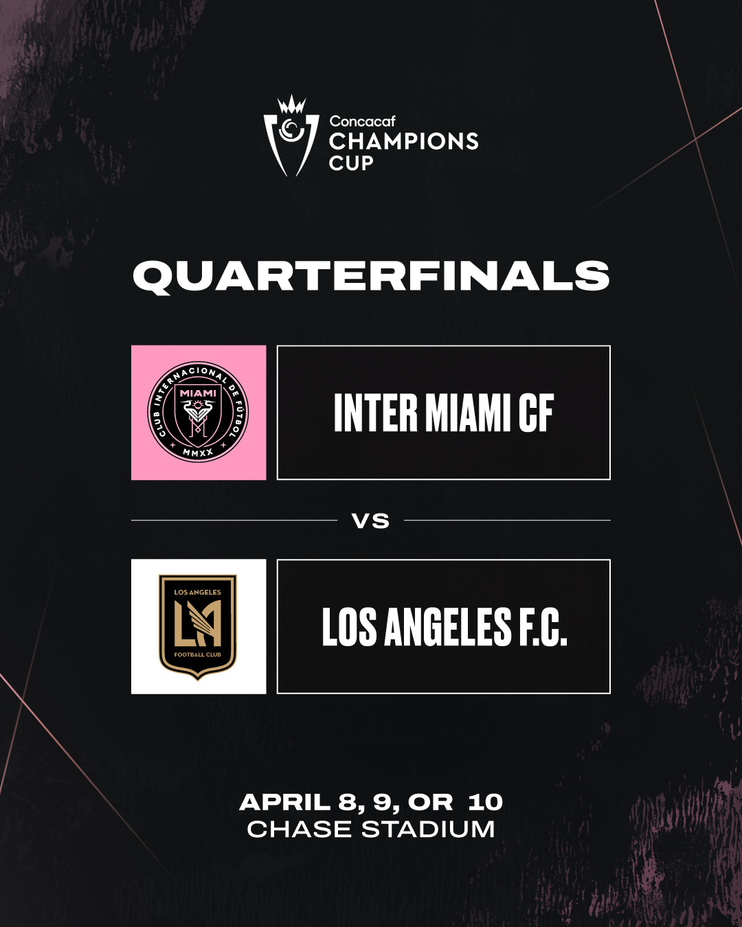 中北美冠軍杯1/4決賽,邁阿密國(guó)際將對(duì)陣洛杉磯FC,具體時(shí)間未定。