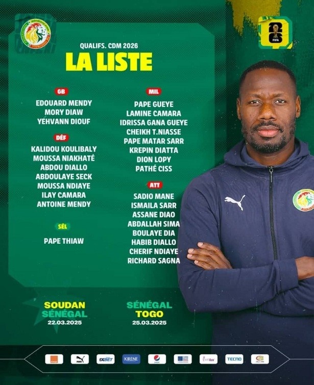 當(dāng)?shù)貢r(shí)間本周四,塞內(nèi)加爾國家隊(duì)公布了新一期大名單,備戰(zhàn)接下來對蘇丹(3月22日)和多哥(3月25日)的兩場世界杯非洲區(qū)預(yù)選賽。其中阿薩內(nèi)-迪奧首次入選塞內(nèi)加爾國家隊(duì)。
