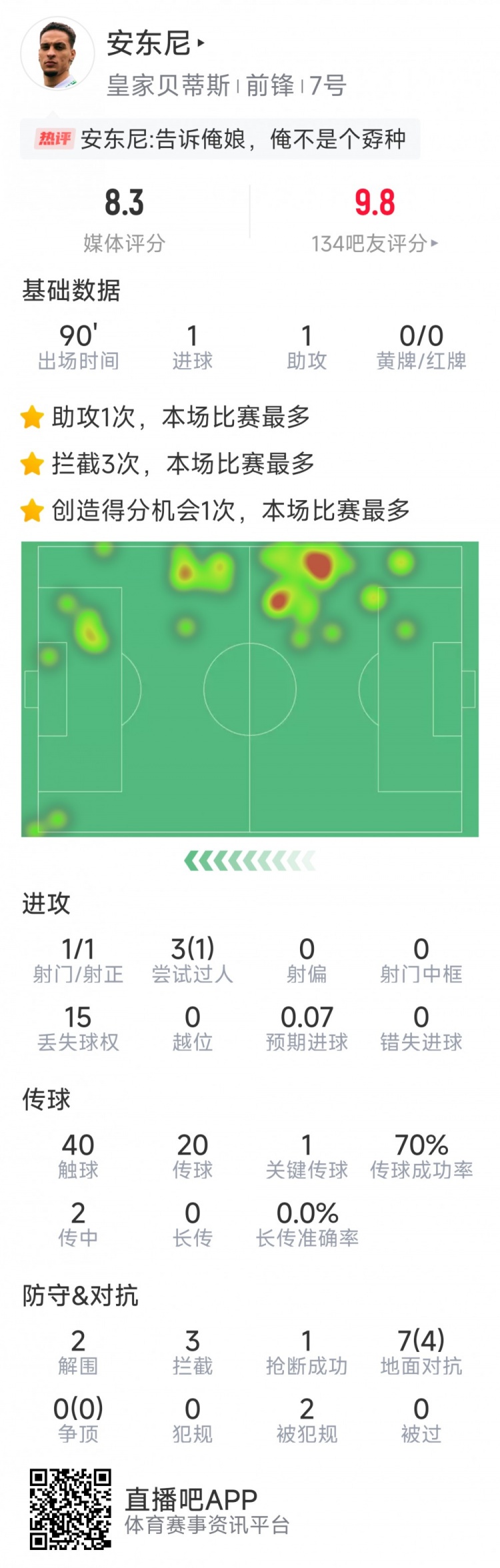 2025-03-14 11:47:21再度閃耀!安東尼本場(chǎng)數(shù)據(jù):傳射建功,1次射門即破門,1關(guān)鍵傳球