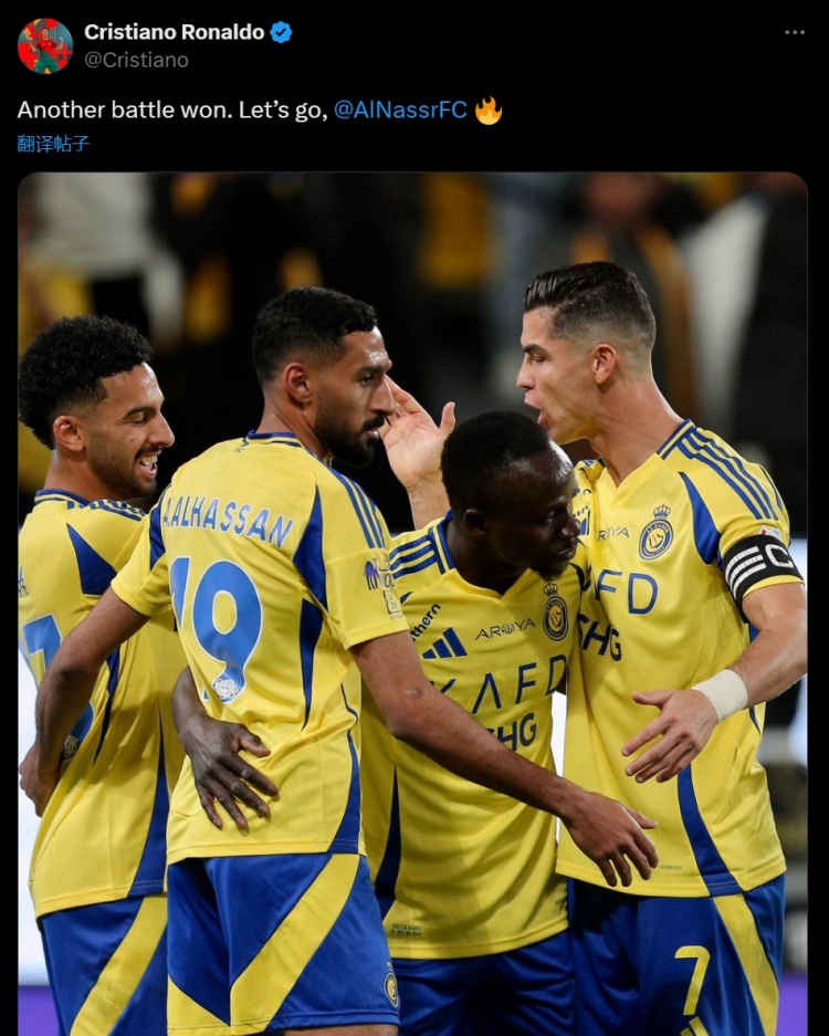 2025-03-15 07:34:31生涯928球!C羅社媒慶祝勝利:又贏下一場戰(zhàn)斗!讓我們繼續(xù)前進!