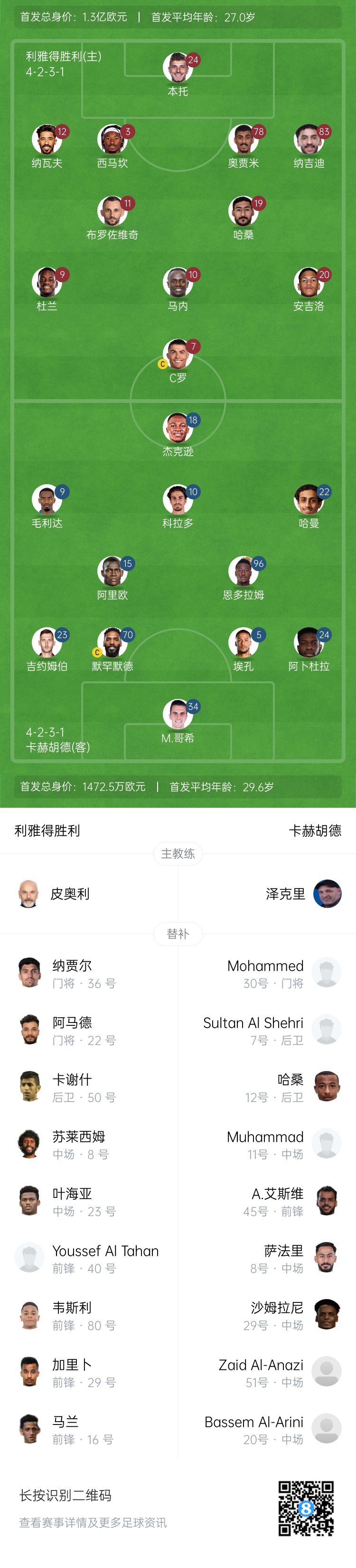 2025-03-15 07:37:09利雅得勝利vs卡赫胡德首發(fā):C羅、馬內(nèi)先發(fā),杜蘭出戰(zhàn)