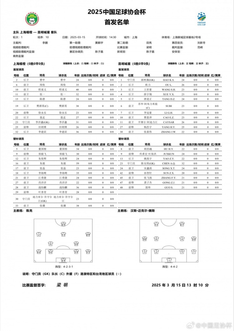 2025-03-15 17:08:21準備出戰(zhàn)!59歲朱駿再戰(zhàn)足協(xié)杯,位列上海橘橙本場替補名單