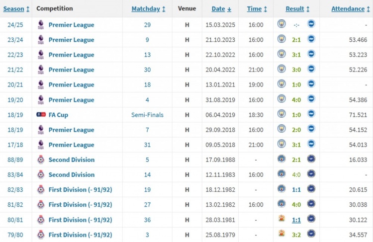 2025-03-15 17:08:2612勝2平,曼城歷史上各項(xiàng)賽事主場(chǎng)對(duì)陣布萊頓未嘗敗績(jī)