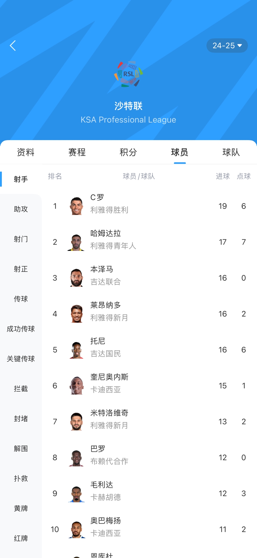 2025-03-15 17:11:13沙特聯(lián)射手榜:40歲C羅19球領(lǐng)跑,37歲本澤馬4輪球荒&16球排第三