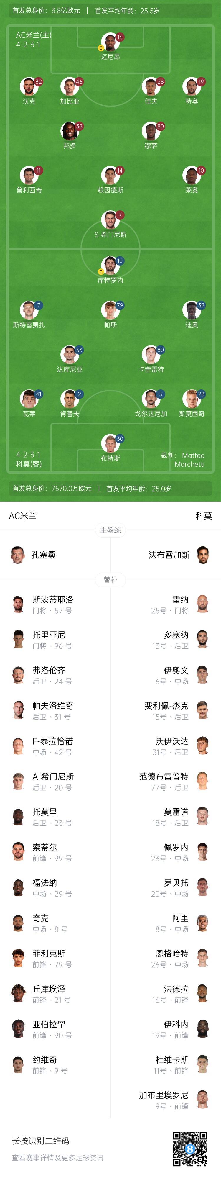 2025-03-16 06:46:35AC米蘭vs科莫首發(fā):S-希門尼斯、萊奧先發(fā) 普利西奇、邦多出戰(zhàn)
