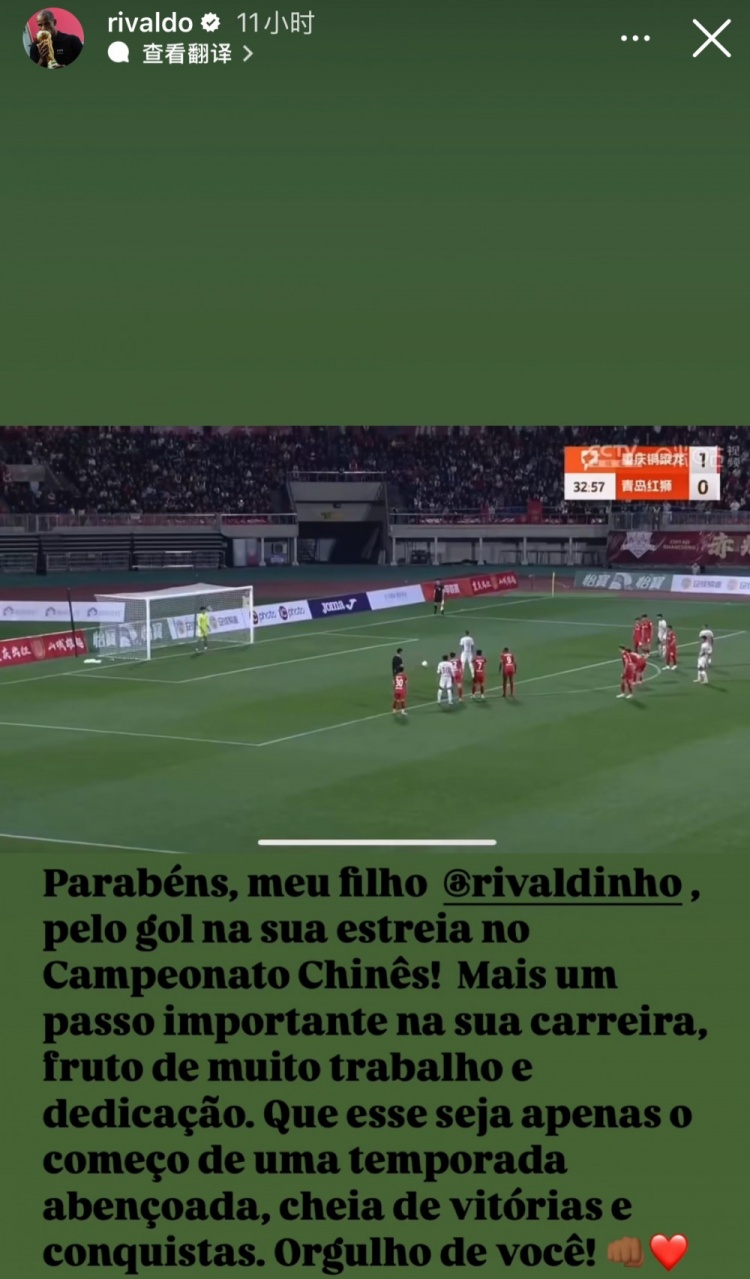 2025-03-16 16:25:59里瓦爾多祝賀兒子中甲首秀破門:愿這只是一個充滿勝利賽季的開始