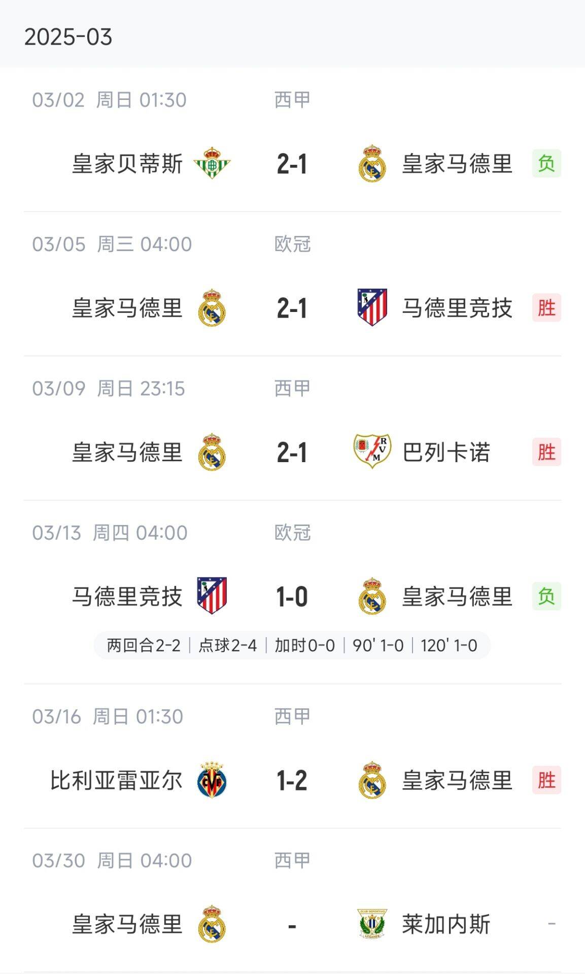 2025-03-16 16:26:38喪心病狂!皇馬3月14天5場&1月26天9場,已長達4個月高強度3天1賽