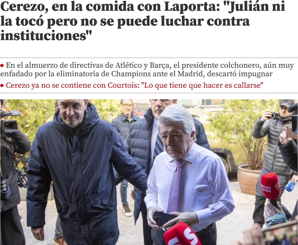 馬競主席塞雷佐再次談到了周中歐冠阿爾瓦雷斯被判無效的點球,塞雷佐斬釘截鐵地表示這球應算有效。