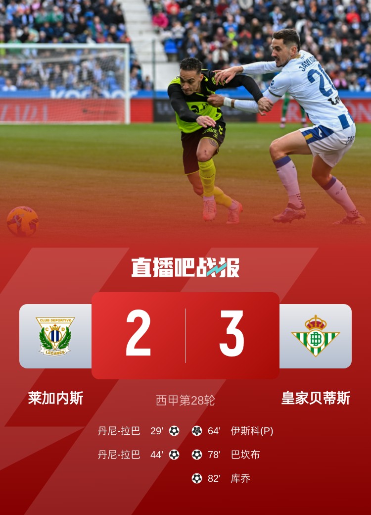 伊斯科點射,安東尼策動絕殺,皇家貝蒂斯3-2逆轉(zhuǎn)萊加內(nèi)斯,西甲5連勝。