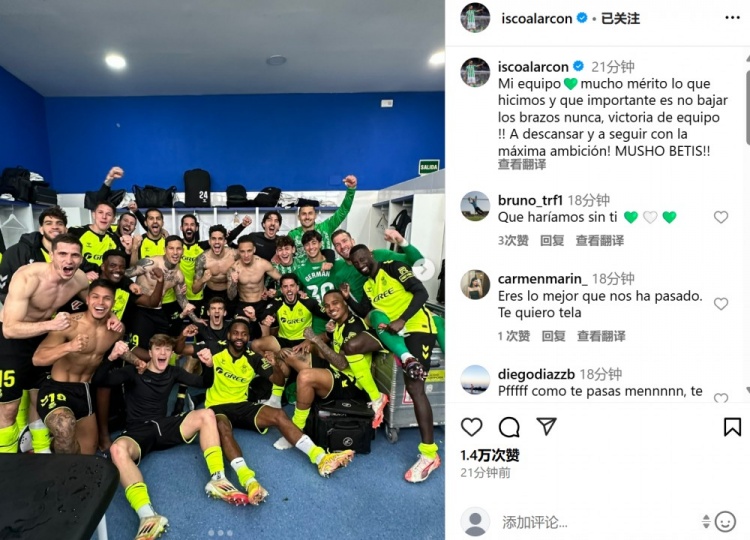 2025-03-17 07:21:01讓二追三逆轉(zhuǎn),伊斯科曬全隊(duì)?wèi)c祝合影:我們值得被認(rèn)可,永不放棄