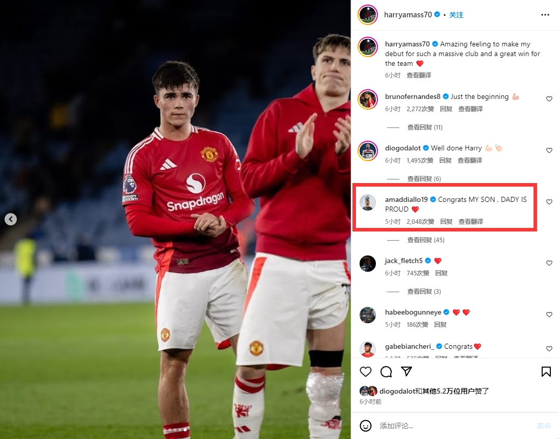 2025-03-17 16:10:1118歲阿瑪斯曼聯首秀,22歲阿瑪德:祝賀我的兒子,爸爸很自豪??