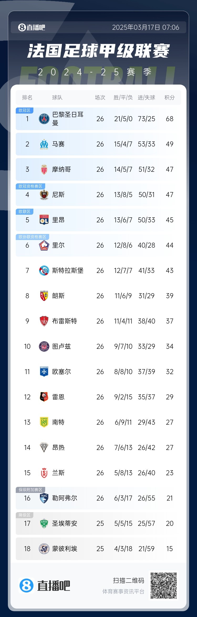 2025-03-17 16:19:35法甲榜首對決獲勝&領(lǐng)先19分,巴黎最快下一輪就能提前奪冠