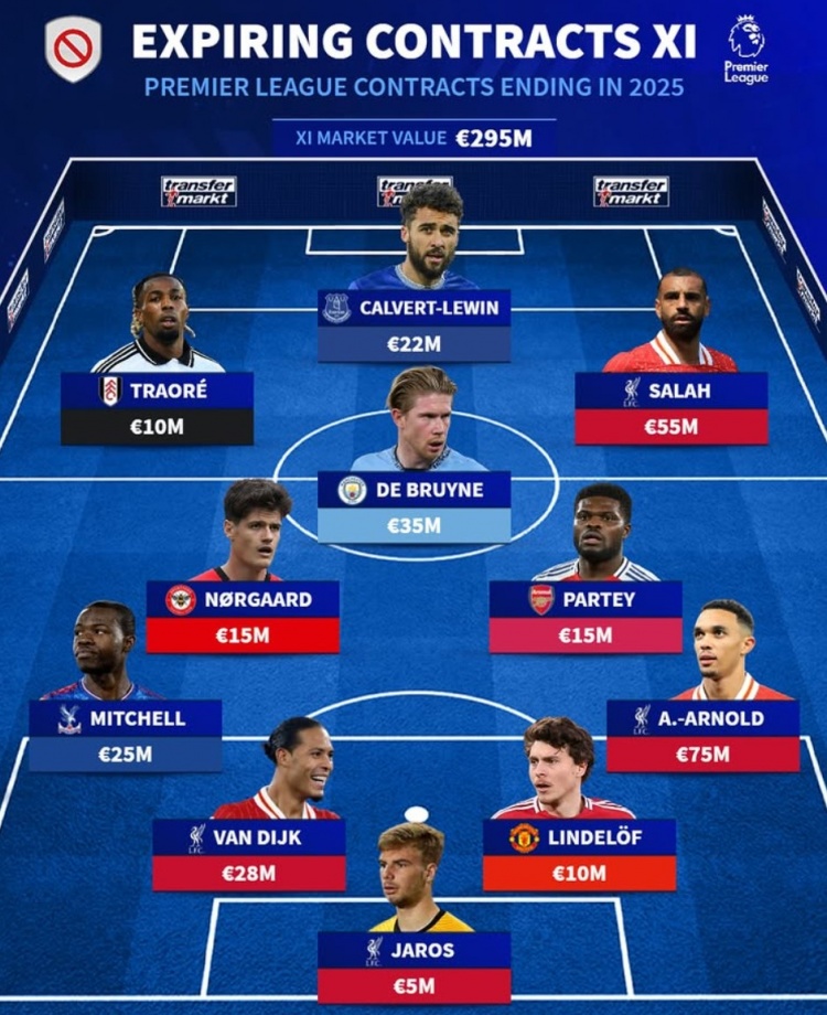2025-03-18 08:23:28英超合同到期最貴陣:阿諾德領(lǐng)銜紅軍4將,德布勞內(nèi)、托馬斯在列