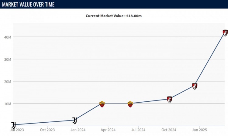 2025-03-18 21:05:21暴漲2400萬歐,19歲伯恩茅斯后衛(wèi)懷森身價已達4200萬歐