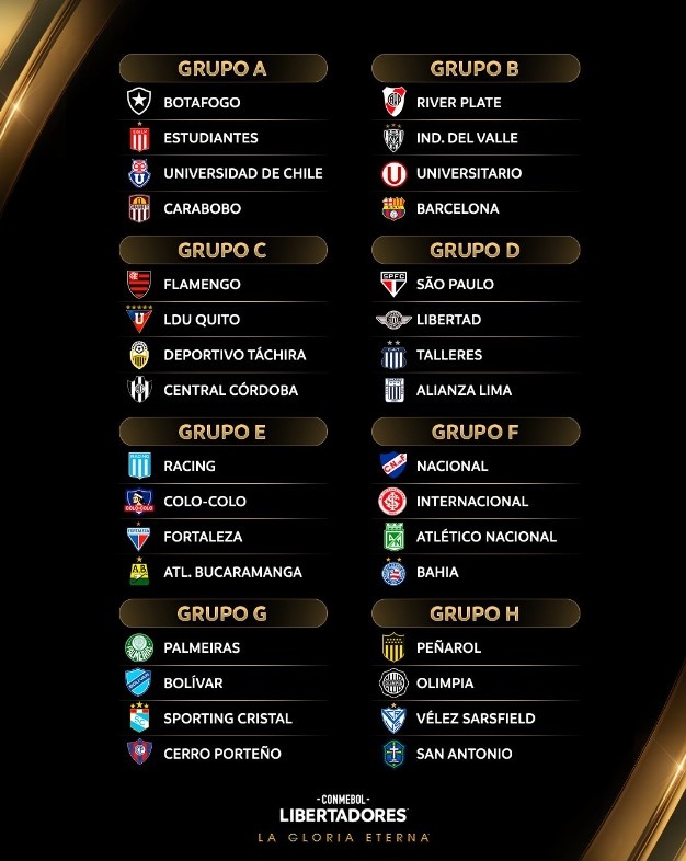 2025-03-18 21:08:44南美解放者杯分組:博塔弗戈、大學生同組,河床、巴塞羅那SC同組