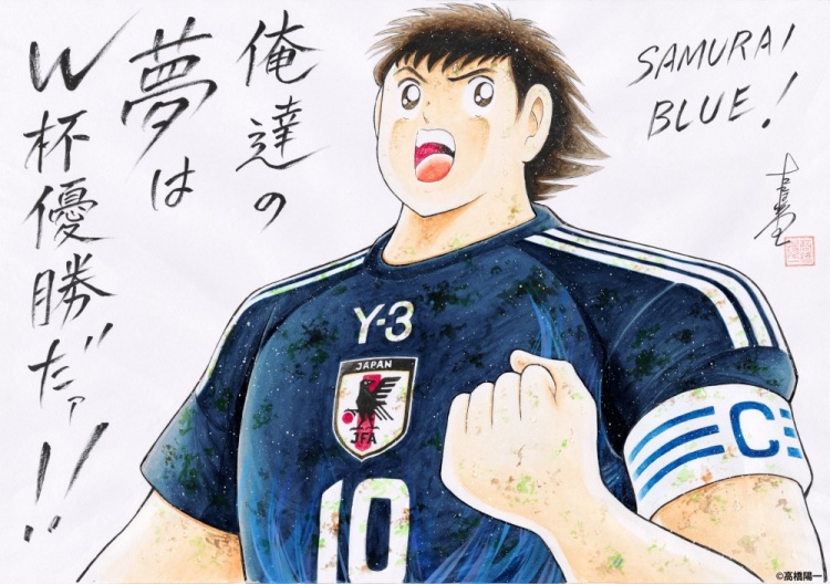 日本隊官推曬出了一張由《足球小將》作者高橋陽一手繪的大空翼海報,文字內(nèi)容為:“藍(lán)武士!我們的夢想是世界杯冠軍!”