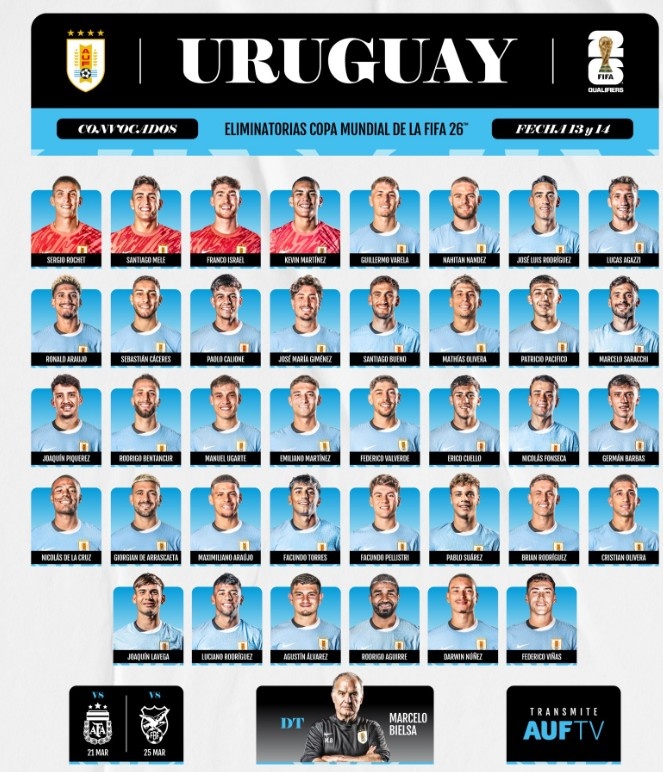 2025-03-19 07:30:04烏拉圭大名單:努涅斯、巴爾韋德、烏加特、本坦庫爾入選