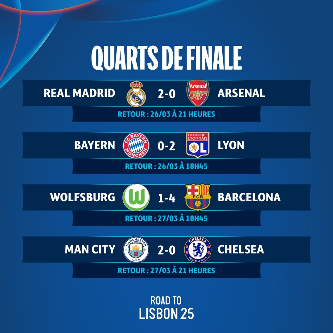2025-03-20 10:15:23女足歐冠1/4決賽首回合:巴薩客場4-1狼堡,曼城2-0切爾西
