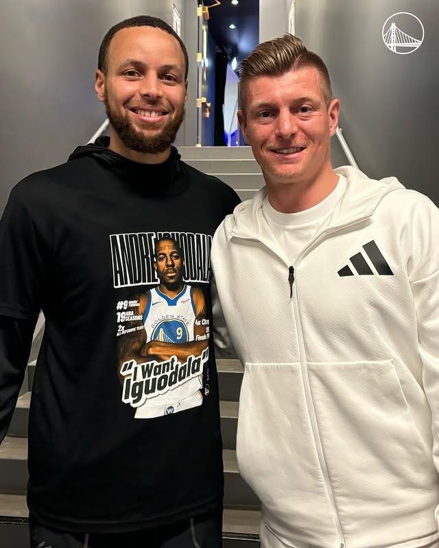 2025-02-25 16:04:41克羅斯現(xiàn)場看勇士vs獨(dú)行俠&伊戈達(dá)拉球衣退役儀式,賽后合影庫里