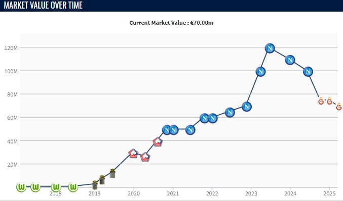 2025-03-20 23:08:52解約金7500萬歐!奧斯梅恩身價降至7000萬,賽季30場26球曼聯覬覦