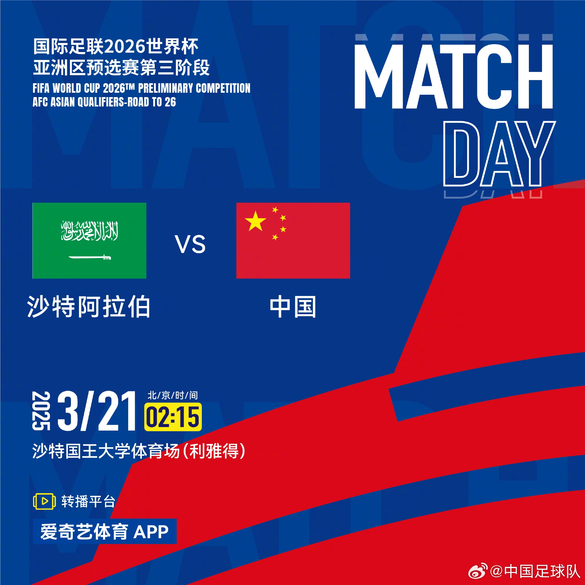 2025-03-20 23:21:26中國國家男子足球隊將在客場對陣沙特阿拉伯國家男子足球隊