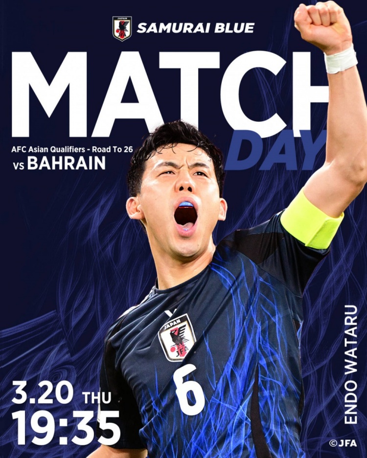 2025-03-20 23:26:26日本隊(duì)公布戰(zhàn)巴林海報(bào):隊(duì)長遠(yuǎn)藤航單人入鏡,振臂高呼