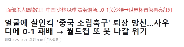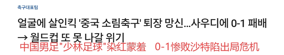 2025-03-21 08:53:59韓媒大面積群嘲國足:殺人飛腿、少林足球、蒙羞退場、世界杯夢碎