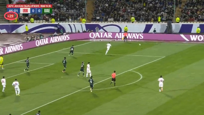 2025-03-21 09:09:44上半場補時29分鐘!伊朗vs阿聯酋因球場照明中斷,目前已恢復進行