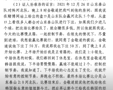 昨日網(wǎng)傳足壇假賭黑判決書,其中孫準(zhǔn)浩的證言有兩部分。