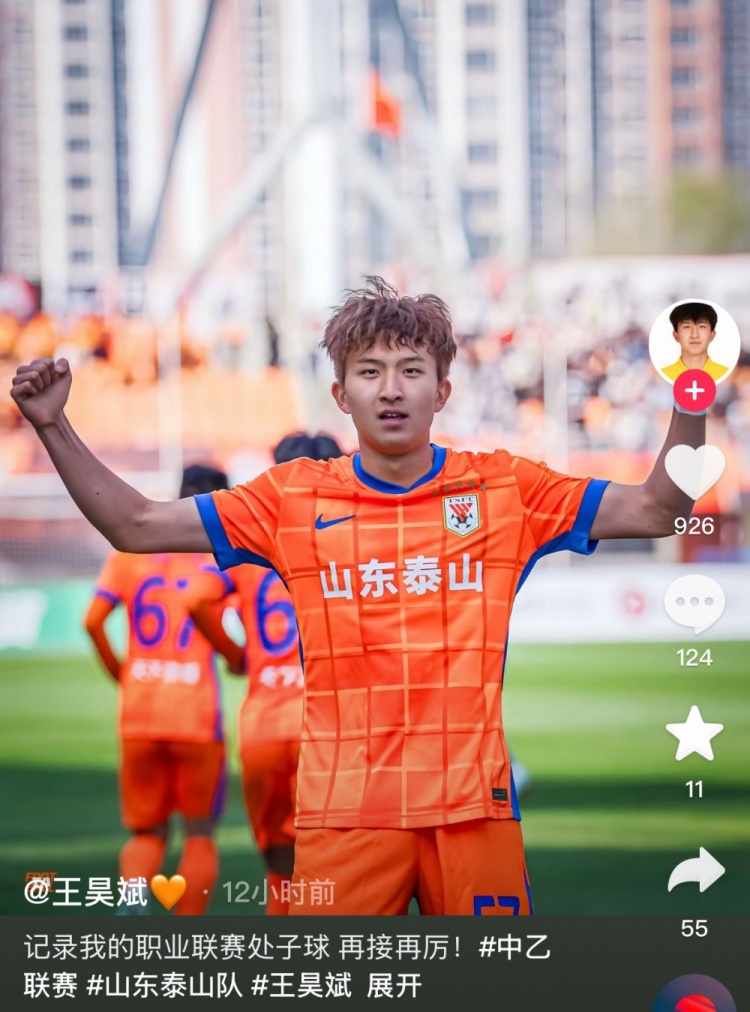 3月23日訊 泰山B隊(duì)球員王昊斌更新社媒,記錄了自己職業(yè)生涯的處子進(jìn)球。