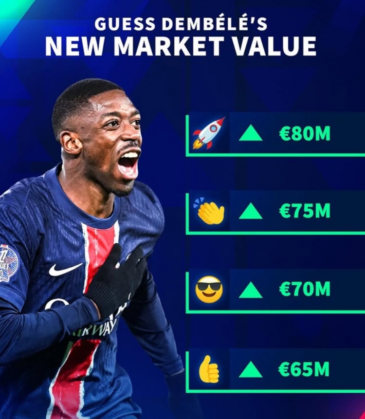2025-03-24 09:26:44最高8000萬歐!德轉(zhuǎn)預(yù)熱27歲登貝萊身價更新 本賽季37場30球7助攻