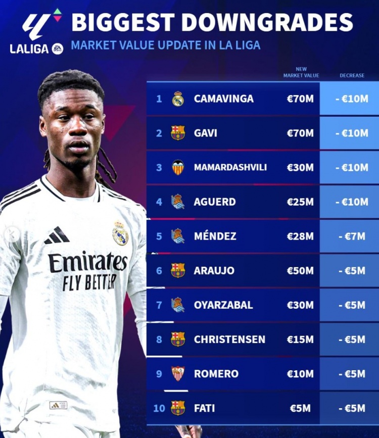 2025-03-24 09:27:27西甲身價貶值榜:加維、法蒂領銜巴薩4將,卡馬文加&瑪瑪達在列